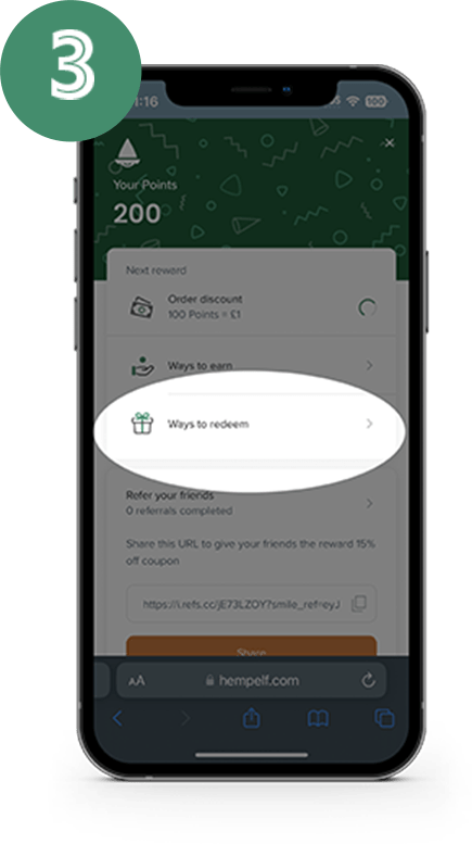 Then select the button found at the bottom left of the screen labeled “Earn Free CBD Products!”